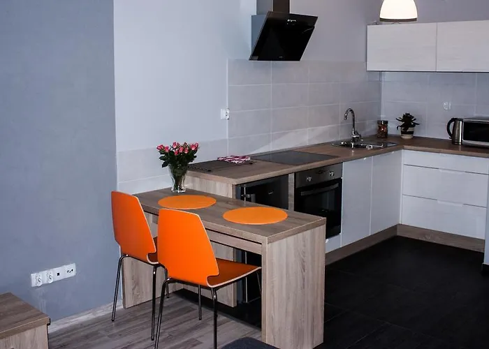 Апартаменты располагают мини-кухней, оснащённые духовкой, кухонной утварью и посудомоечной машиной. Ресторан Pizza Rino предлагает итальянскую кухню в 150 метрах от этих апартаментов. Эти апартаменты расположились всего в 200 метрах от автобусной остановки Na Szancach.